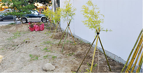 栽種樹木時,通常是先定位好園中的主樹位置,主樹栽種完成後,園中的主景有了定位,再一一向四周發展,逐一栽種其他中小景所設計的植栽進來,逐步構成園中的花木配置。