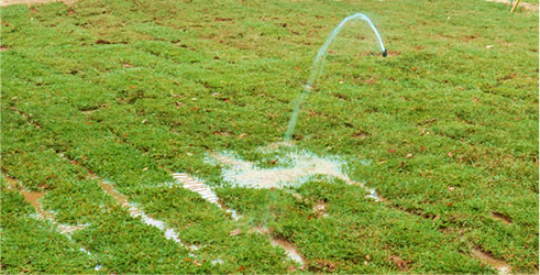 一星期後,草皮的新根已長出,改1天至2天澆水一次即可